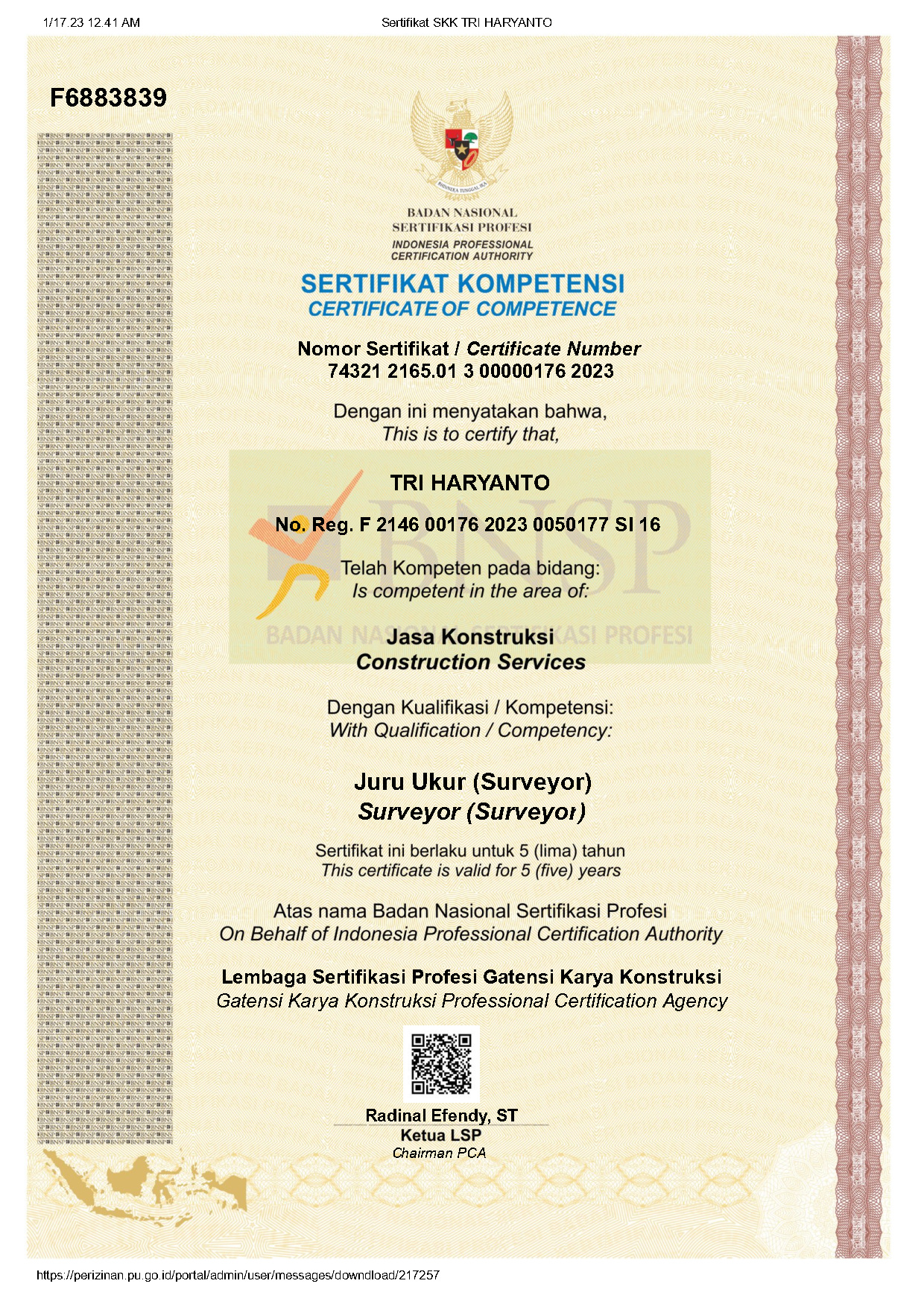 - Sertifikat Kompetensi SKK Konstruksi
